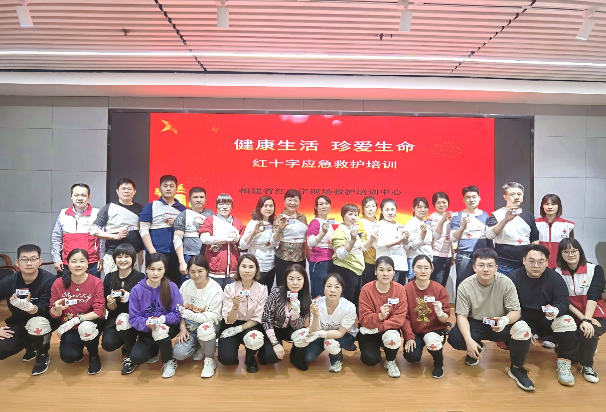 此次培訓由線上理論考試和線下課堂講授組成,課程內容涵蓋紅十字運動基本知識、救護概論與教學法、心肺復蘇等。在通過考核后,福建省紅十字會工作人員為參訓員工頒發了“紅十字救護員證”。