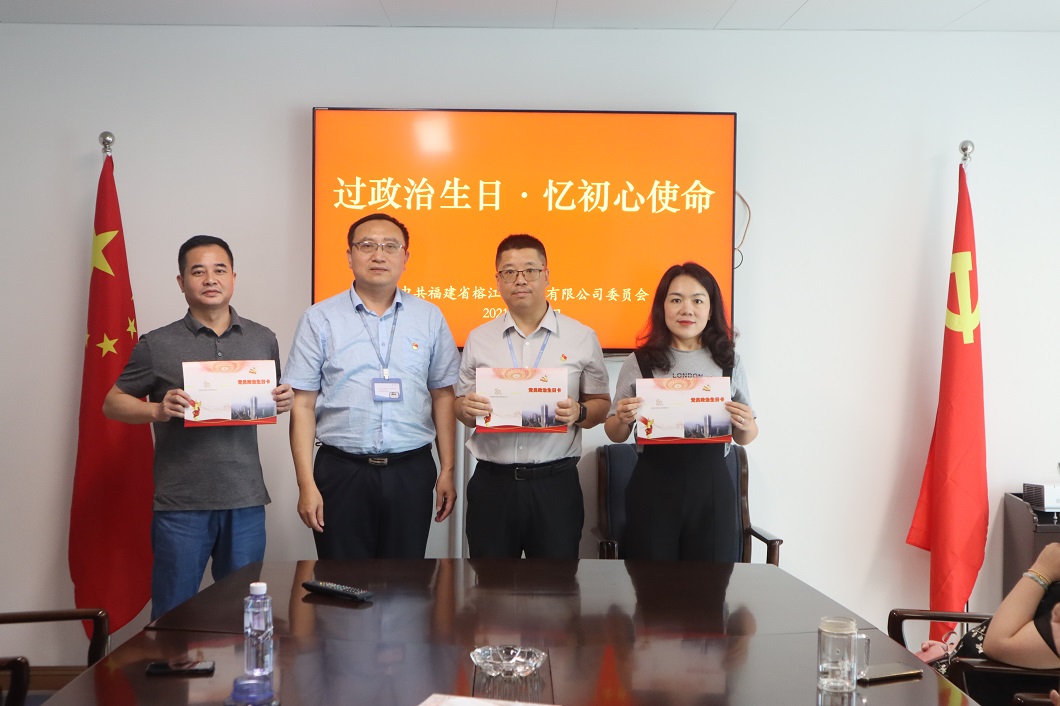 觀看活動結束后,公司黨委還舉行了“過政治生日·憶初心使命”主題黨日活動,由公司黨委書記、總經理郭東亮為7月份入黨的三位同志頒發了政治生日賀卡,與在場所有黨員共勉,要時刻牢記黨員身份,注重黨性修養,永葆先進本色。