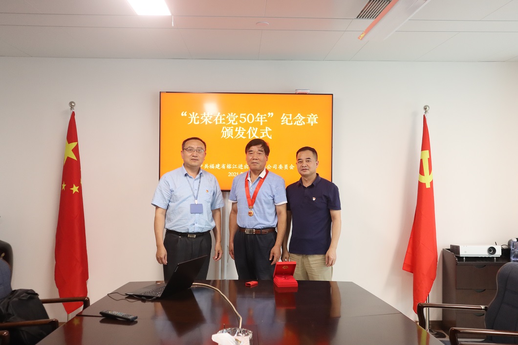6月21日下午,榕江公司黨委隆重舉行“光榮在黨50年”紀念章頒發儀式。公司黨委書記、總經理郭東亮及部分班子成員、黨員代表出席儀式。