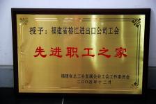 2004年12月福建省總工會直屬企業工會工作委員會授予福建省榕江進出口公司《先進職工之家》榮譽稱號