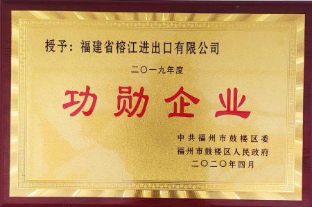 2020年4月中共福州市鼓樓區委、福州市鼓樓區人民政府授予福建省榕江進出口有限公司2019年度《功勛企業》稱號